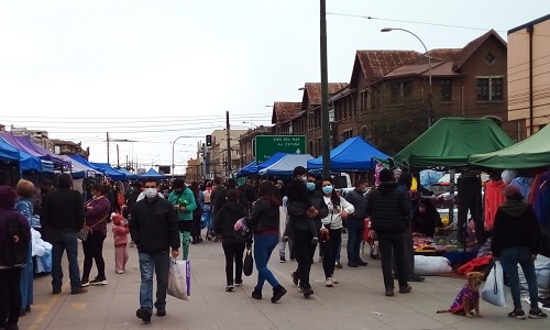 La feria se instaló desde temprano y debió desmontarse antes de lo usual por la lluvia caída en la ciudad puerto, eso no ahuyentó inmediatamente a todos los locatarios, hasta aumentar su intensidad.